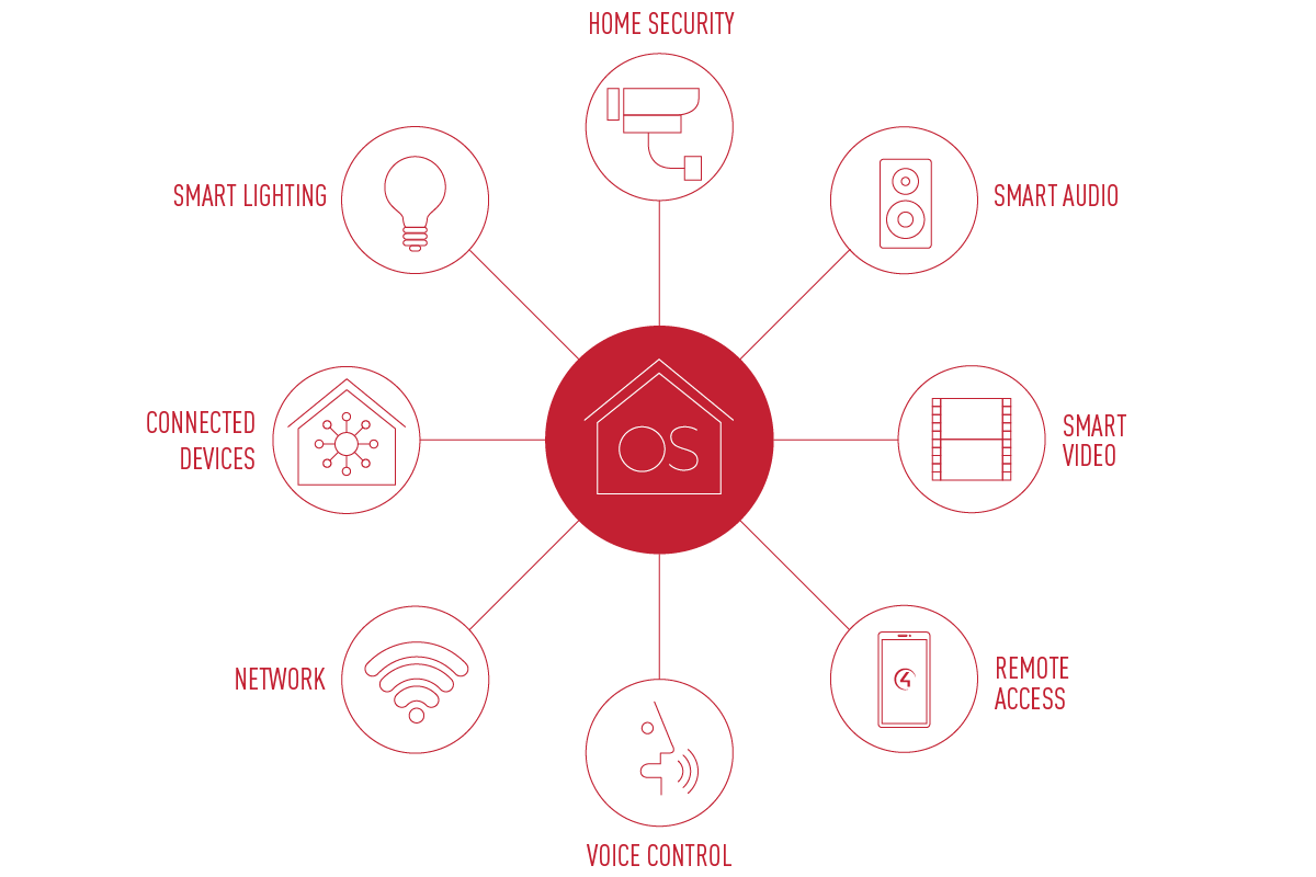 A smart home Operating System (OS) is a software platform that connects the many different types of technology in your home together to make devices easily accessible and customizable. The Control4 Smart Home OS enables you and your family to control nearly every device and system in the house in ways that are easy and fun to use.